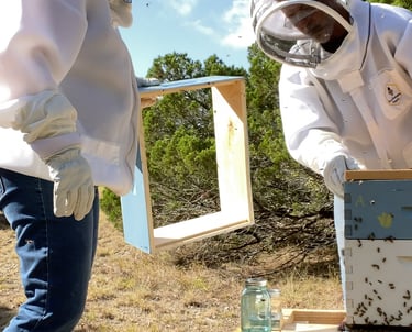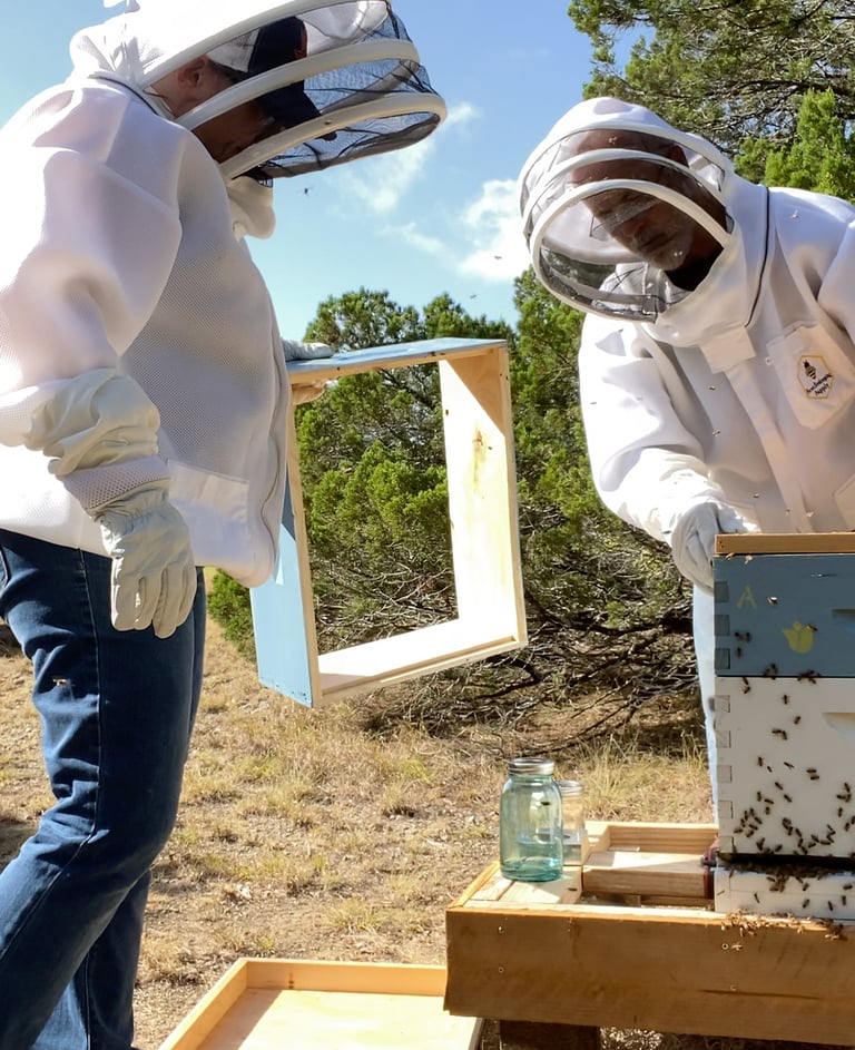 Beekeeping was always in the back of our minds for when we finally had some land. Robbin had some childhood experience helping his Dad (who Donna affectionately calls the "bee whisperer"), but Donna was a total newbie and wanted to learn the ropes! So, before we jumped in, we spent about a year soaking up all the bee knowledge we could find. Seminars? Check. Monthly beekeeper association meetings? You bet!