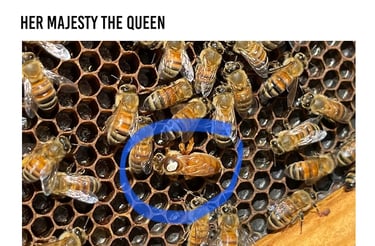 Queens—Honey bee queens are the reproductive females of the species. They can lay up to 2,500 a day. Each egg is either fertilized to turn into a worker, or unfertilized which will become drones. She is attended by a circle of bees, called a retinue who groom, water and feed her.