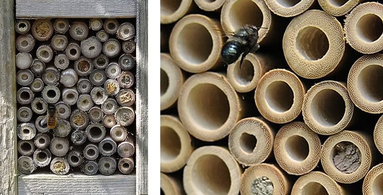 So I did some googling. And to my amazement, these tubes are for Mason bees. Mason bees are similar to honey bees in that they are instrumental in the pollination of all kinds of plants. In fact, these bees are highly sought after for orchards in particular as they are 3x better pollinators, and are especially adept at cross-pollination! They also make great backyard bees given their extreme gentle nature.